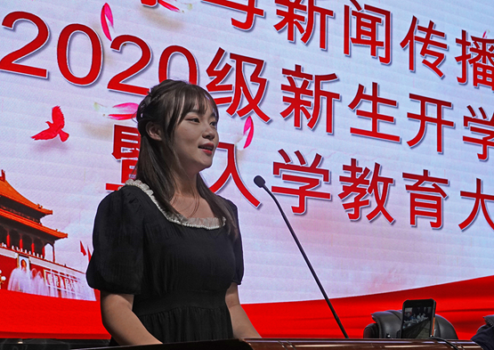 接着分别由老生代表秘书1182班桂千曦、新生代表汉语言文学1205班杨诗琪两位同学发言。桂千曦同学总结自己在海大中所学习到的经验:坚定理想信念,争做有理想的奋斗新青年;培养过硬的本领,提高综合素质;强身健体,让运动成为习惯;热爱生活,向美而行。并表达了自己对新生们的期望,鼓励新生们在接下来的老员工活中锻炼自己。杨诗琪同学则选择从诉说自己在疫情中所受到的阻力入手,倡议作为大一新生的同学们,应有着明确的奋斗目标,秉承并践行海大“广学明德,海纳厚为”的校训。她由衷地祝贺一同进入海大的文传学子,同他们一起展望未来。