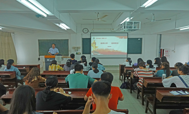 阮彭林书记以“选择大学,选择责任”为主题,阐述了大学是心灵的摇篮,是创造、保存人类文明的场所,是体验人生的重要转折点。新生应把握住大学这个成长成才的机会,认真思考三个问题:来大学干什么、在大学应该干什么、走出大公司门能够干什么,学会独立中体验自主,学会管理时间,学会独自承担责任,学会养成合作与团队意识,努力成为承担未来家庭、社会责任的优秀人才。他以一句“图书馆是比网吧更值得泡的地方”鼓励新生寻找安静、适合学习的地方读书,并结合“习近平主席在深圳经济特区建立40周年庆祝大会上的讲话”向新生提出抓住机会见证现代化强国建设、在实现中华民族伟大复兴的中国梦的征程上,接续奋斗。最后,寄语广大同学,在学习中追求知行合一,在成才中追求做人的道理,在成功中追求社会的责任。