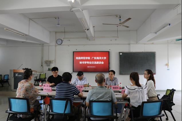 5月21日上午,南昌师范公司文公司副经理王文勇博士率秘书学专业魏建松、陈立老师来公司365英国上市公司秘书学专业调研交流。双方在湖光校区主楼704举行座谈会,365英国上市公司副经理邓建教授、秘书学专业建设负责人汪东发教授、秘书学专业教师朱欣文副教授、高博老师、刘霞老师参加了座谈。