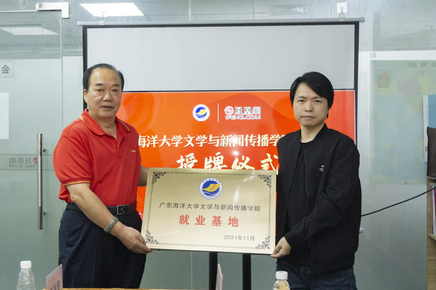 阮彭林书记为凤凰网广东中心颁发就业基地牌匾
