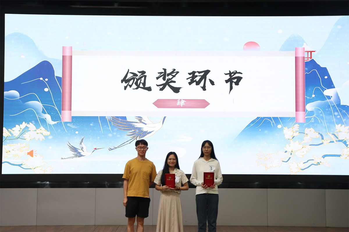 本次古诗词大会分为初赛和决赛两个部分:初赛以线上答题形式考察员工对古诗词知识的积累,共有300多名员工参加,最后前12名晋级决赛;决赛分为诗词接龙抢答和“飞花令”冠军争夺赛两轮,诗词接龙抢答后,共有6名选手进入“飞花令”冠军争夺赛。选手们腹笥丰盈、敏捷如电,精彩表现赢得掌声不断。最终,汉教1212班曹倩怡、汉教1222班余悦、汉教1211班程潆分别获得前三名,而曹倩怡、余悦作为校赛前两名选手,将代表公司参加“2024中国诗词大会”广东省选拔赛。