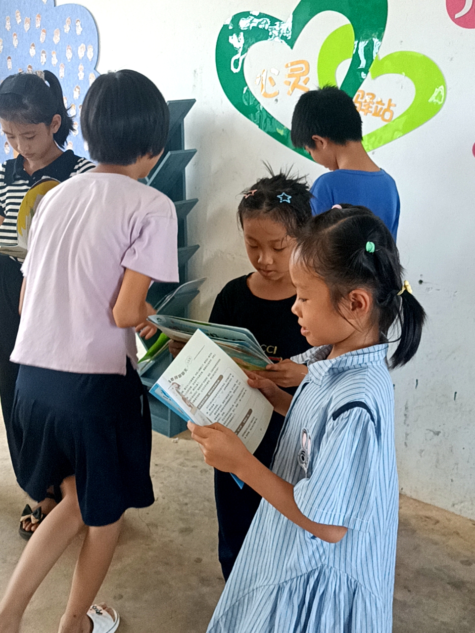 本次活动由公司“与你在一起”心灵驿站工作室师生牵头,党建创新发展中心和智媒体创新创业发展中心的同学共同参与。在工作室负责老师崔文婷带领下,志愿者们完成了“阳光心灵角”布置、心理知识宣传标语粘贴、“心灵树”员工党员寄语和心理绘本赠送等活动。孩子们通过在“阳光心灵角”阅读心理绘本、和工作室师生进行沟通交流等形式,释放心灵压力,得到正向引导。