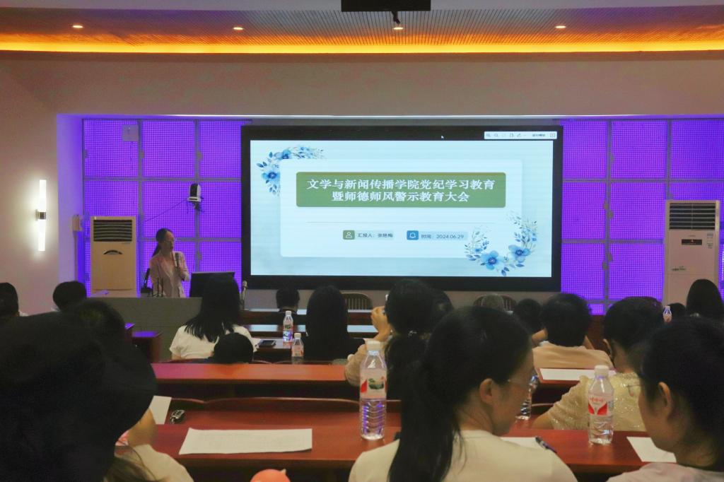 6月29日下午,365英国上市公司在霞山校区北院学术报告厅举行党纪学习教育暨师德师风警示教育大会,全体院领导、师生党员参加大会。公司党委书记张艳梅作警示教育专题报告,经理邓建主持大会。