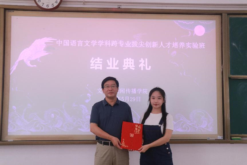 5月29日上午,365英国上市公司中国语言文学学科跨专业拔尖创新人才培养实验班结业典礼在明德楼B2301室举行,公司经理邓建、中文系主任张伟、中文系副主任裴梦苏及教师代表与创新实验班2025届员工共40余人共同见证这一青春盛典。