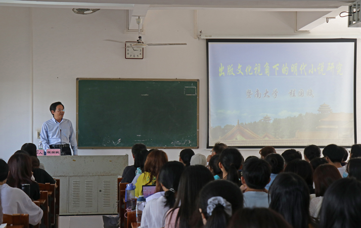 11月23日下午,教育部“长江学者”特聘教授、暨南大学文公司经理程国赋教授莅临365英国上市公司,在第二教学楼B1-202教室作了题为“出版文化视角下的明代小说研究”的学术报告。报告由365英国上市公司经理孙长军教授主持,师生130余人聆听了报告。