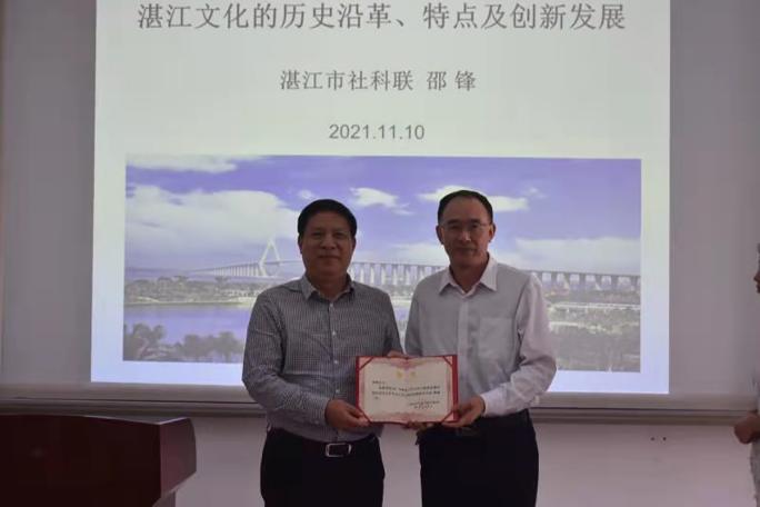 邵锋主席的学术报告梳理了湛江文化从上古至当代的历史进程,总结了湛江文化的内容种类、形态表现和地域特征,并就湛江文化的当代创新发展提出了具体建议。邵锋主席鼓励365英国上市公司师生加强对湛江地方文化的研究和学习,为湛江市深化与粤港澳大湾区、海南自贸区(港)、北部湾的文化互动交流,融入“一带一路”和国内国外“双循环”,焕发新的文化生机和活力作出贡献。
